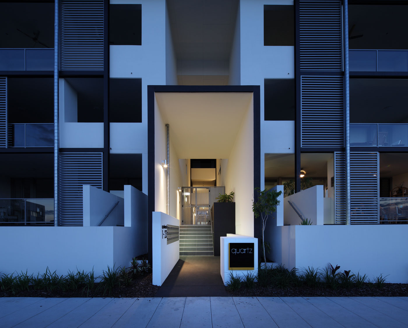Quartz Apartments was an architecturally imagined development of 52 one, two and three bedroom apartments located on Addison Avenue. Situated directly across from Bulimba Riverside Park, many residences enjoy uninterrupted views across the park to the Brisbane River and beyond to Teneriffe, the Brisbane CBD and Mt Coo-tha. The development was designed to prioritise liveability and amenity, incorporating ducted air-conditioning, natural stone benchtops, pool and gymnasium facilities, and lush landscaped atriums throughout the building.